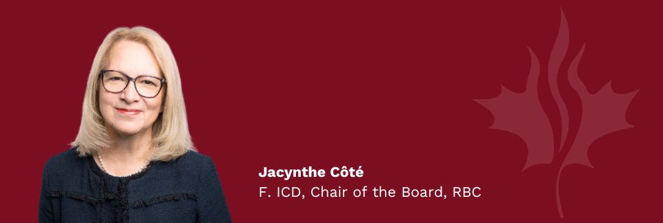 In 2014, Jacynthe started her directorship career. “Directorships allow me to contribute in meaningful ways to the present and future success of an organization,” explains Jacynthe, who is a member of the boards of directors of Transcontinental Inc., CGI Inc., and serves as the Chair of Royal Bank of Canada. Previously, she served as the Chair of Hydro Québec.