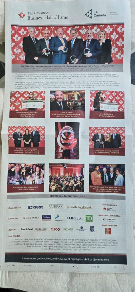 We were delighted to highlight some of the moments from the 2022 Canadian Business Hall of Fame Induction Ceremony and Celebration as a Societies Page in the Globe and Mail.